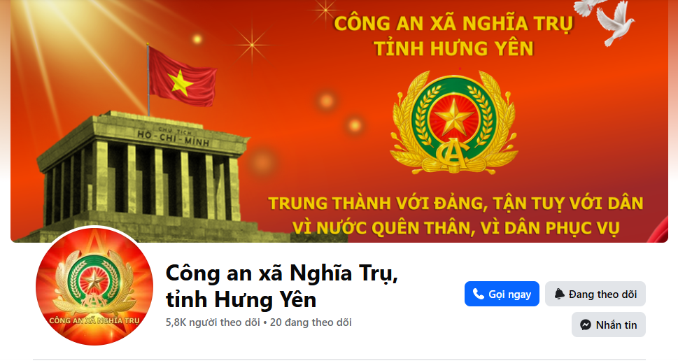 Fanpage Công an xã Nghĩa Trụ trên nền tảng mạng xã hội Facebook