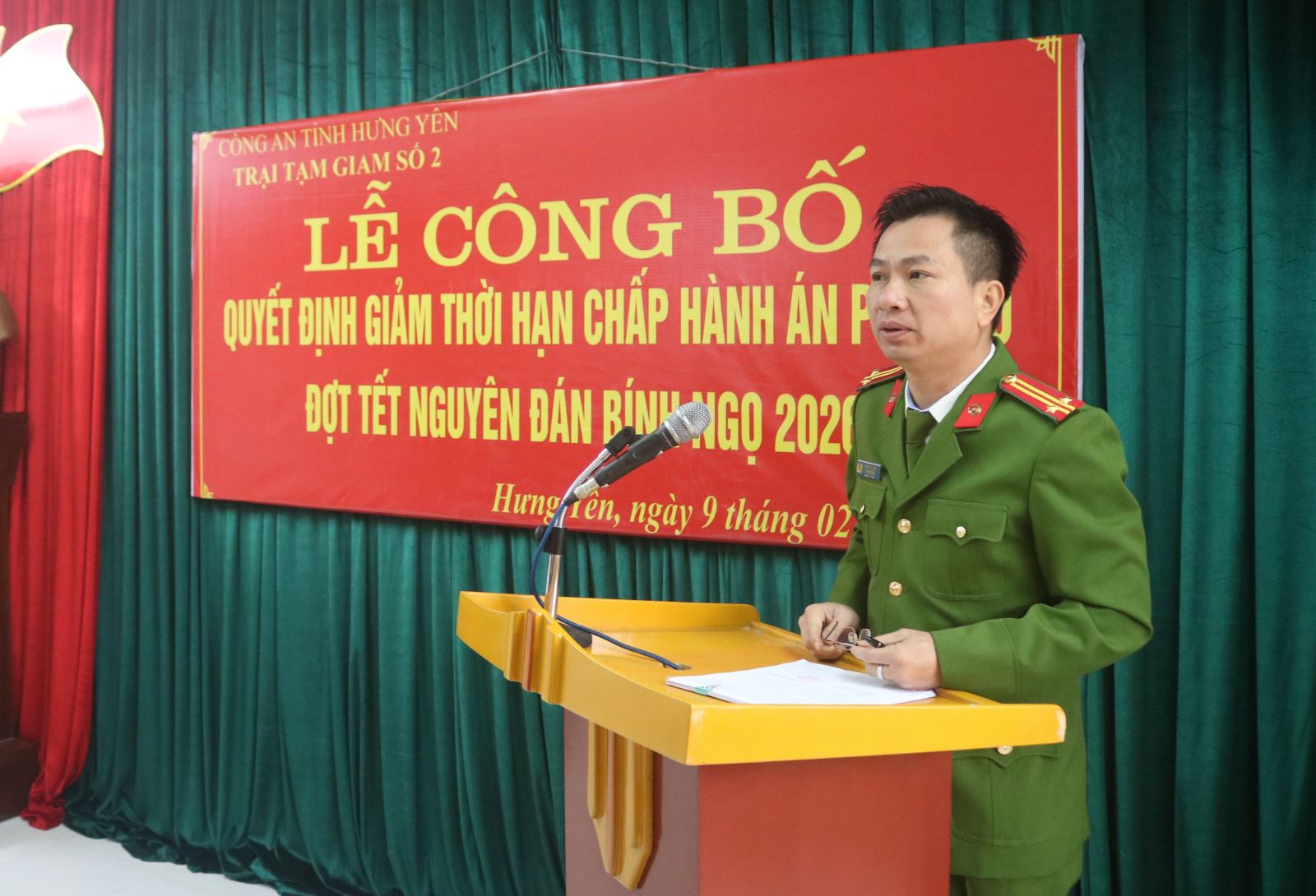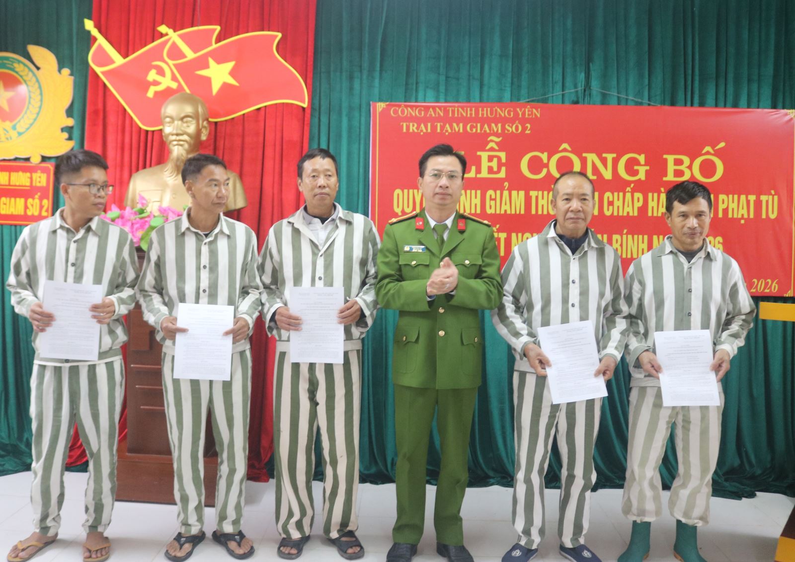 Nhằm hướng tới mục tiêu giáo dục cải tạo người phạm tội, lan tỏa sâu rộng chính sách khoan hồng nhân đạo của Đảng và Nhà nước, đặc biệt trong không khí hân hoan đón Tết cổ truyền của dân tộc. Sáng ngày 09/02/2026, Trại tạm giam số 2 đã tổ chức Lễ công bố Quyết định giảm thời hạn chấp hành án phạt tù đợt tết Nguyên đán Bính Ngọ 2026 cho phạm nhân đang chấp hành án tại Trại tạm giam số 2.