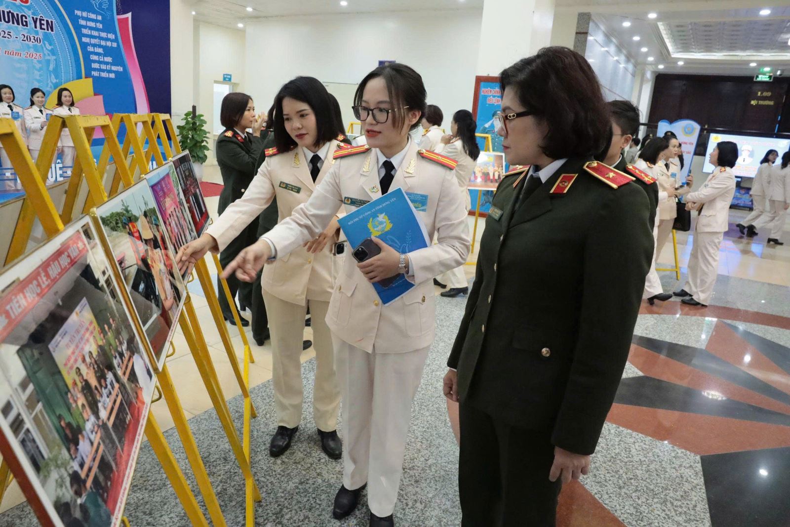 Các đại biểu tham quan triển lãm ảnh các hoạt động nổi bật nhiệm kỳ 2021-2025 của Hội phụ nữ Công an tỉnh Hưng Yên