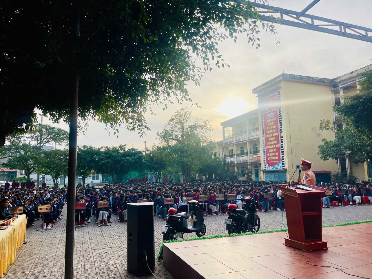 Buổi tuyên truyền thu hút sự tham gia tích cực của giáo viên và học sinh, tạo không khí sôi nổi, chủ động tiếp thu. Hoạt động không chỉ giúp trang bị kiến thức và kỹ năng cần thiết cho học sinh mà còn góp phần lan tỏa văn hóa giao thông an toàn trong nhà trường. Thông qua chương trình, Phòng Cảnh sát giao thông tiếp tục khẳng định vai trò nòng cốt của lực lượng CSGT trong công tác bảo đảm trật tự an toàn giao thông, đồng thời tăng cường sự phối hợp giữa lực lượng Công an với nhà trường trong việc giáo dục kỹ năng sống, phòng ngừa tai nạn giao thông cho thanh thiếu niên, hướng tới xây dựng môi trường giao thông học đường văn minh, an toàn.