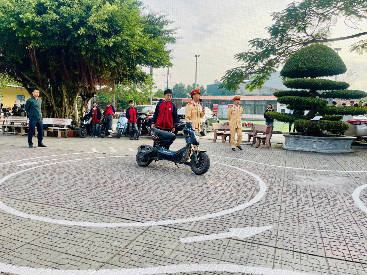 Cũng trong chương trình, các em học sinh đã được thực hành điều khiển phương tiện theo hình số 8 dưới sự hướng dẫn của cán bộ CSGT. Phần thực hành giúp các em làm quen với thao tác giữ thăng bằng, điều chỉnh tốc độ, kỹ năng vào - ra cua hẹp và xử lý các tình huống bất ngờ. Qua đó, các em được rèn luyện kỹ năng thực tế, góp phần hình thành thói quen điều khiển phương tiện an toàn và đúng kỹ thuật.