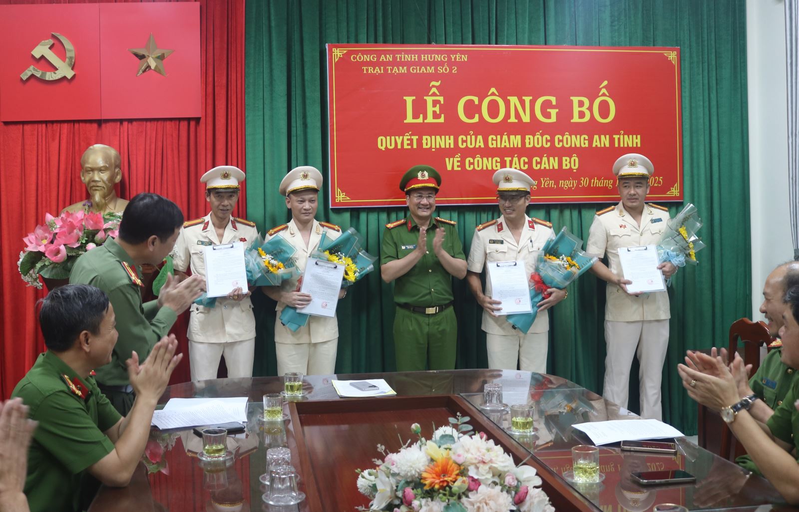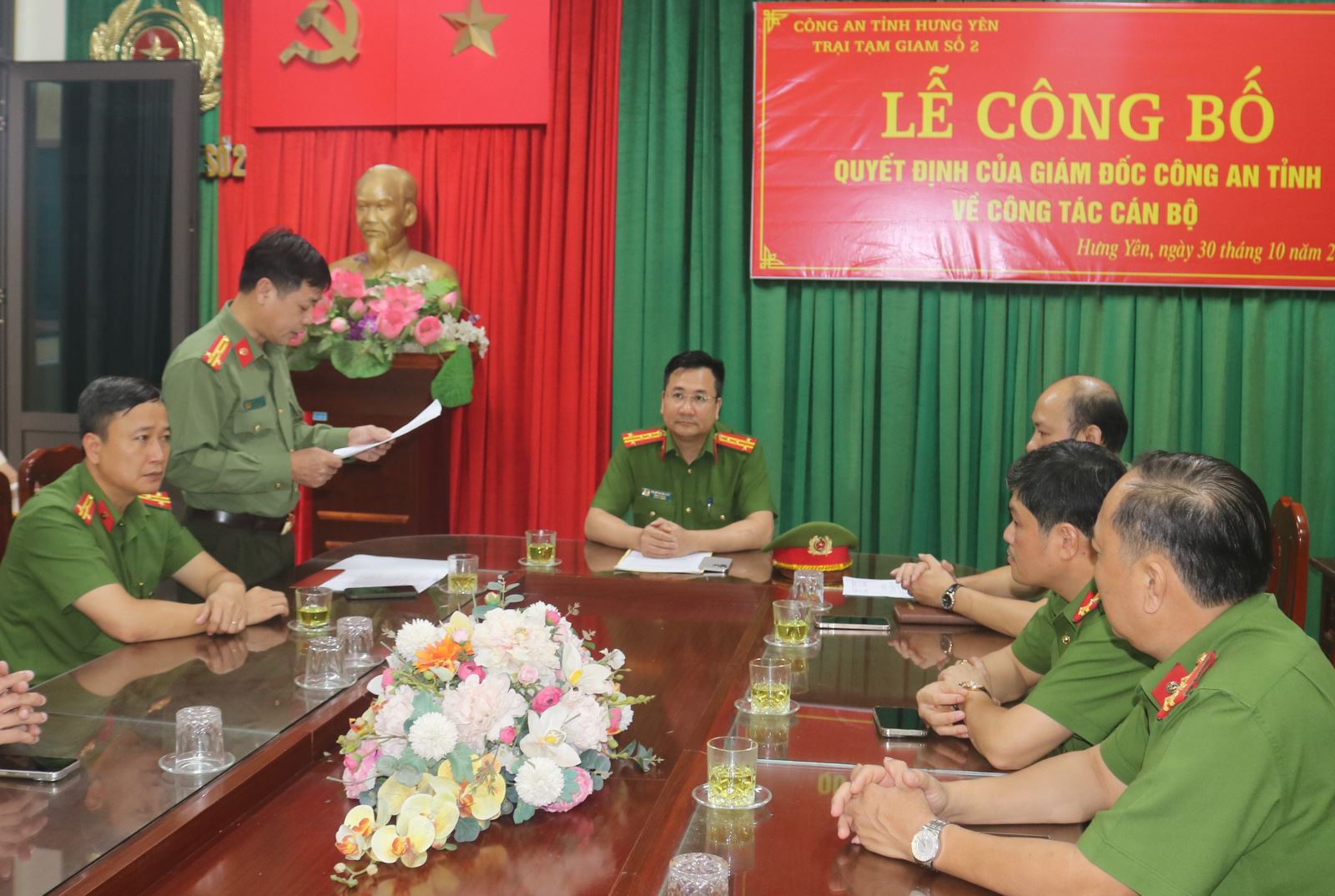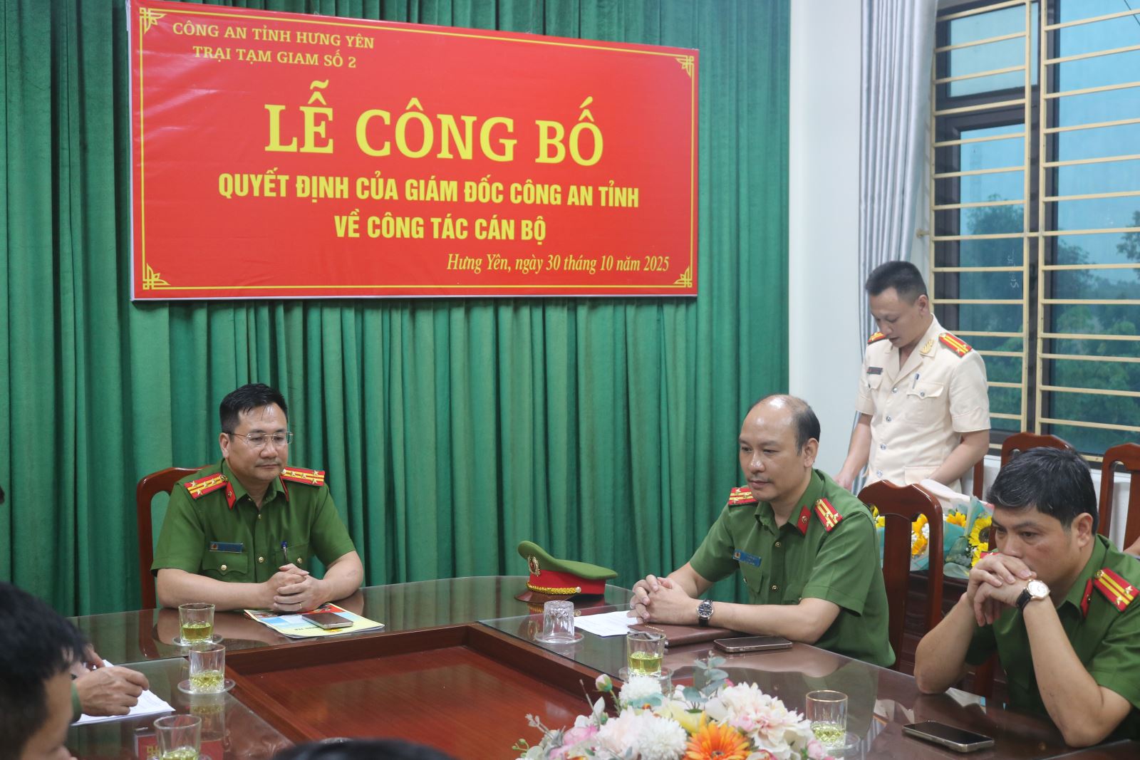 Chiều ngày 30/10/2025 tại Trại tạm giam số 2 - Công an tỉnh Hưng Yên đã long trọng tổ chức Lễ công bố các Quyết định của Giám đốc Công an tỉnh về công tác cán bộ. Buổi Lễ có sự chủ trì của đồng chí Đại tá Phạm Thanh Tiến – Phó Giám đốc Công an tỉnh; sự tham gia của đại diện lãnh đạo phòng Tổ chức cán bộ; sự có mặt của Đảng ủy, Lãnh đạo và chỉ huy các đội công tác, phân trại tạm giam - Trại tạm giam số 2.