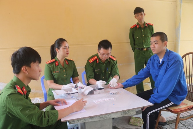 Cán bộ y tế - Bệnh xá Trại tạm giam số 2 thực hiện tư vấn, xét nghiệm sàng lọc HIV cho người bị tạm giữ, người bị tạm giam
