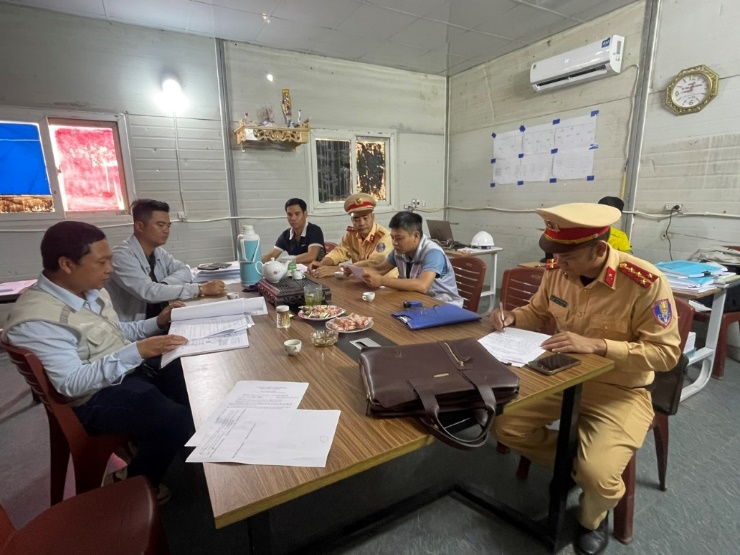 Trạm CSĐT Trà Lý làm việc với các đơn vị liên quan tại khu vực thi công cầu vượt sông tuyến đường cao tốc CT08