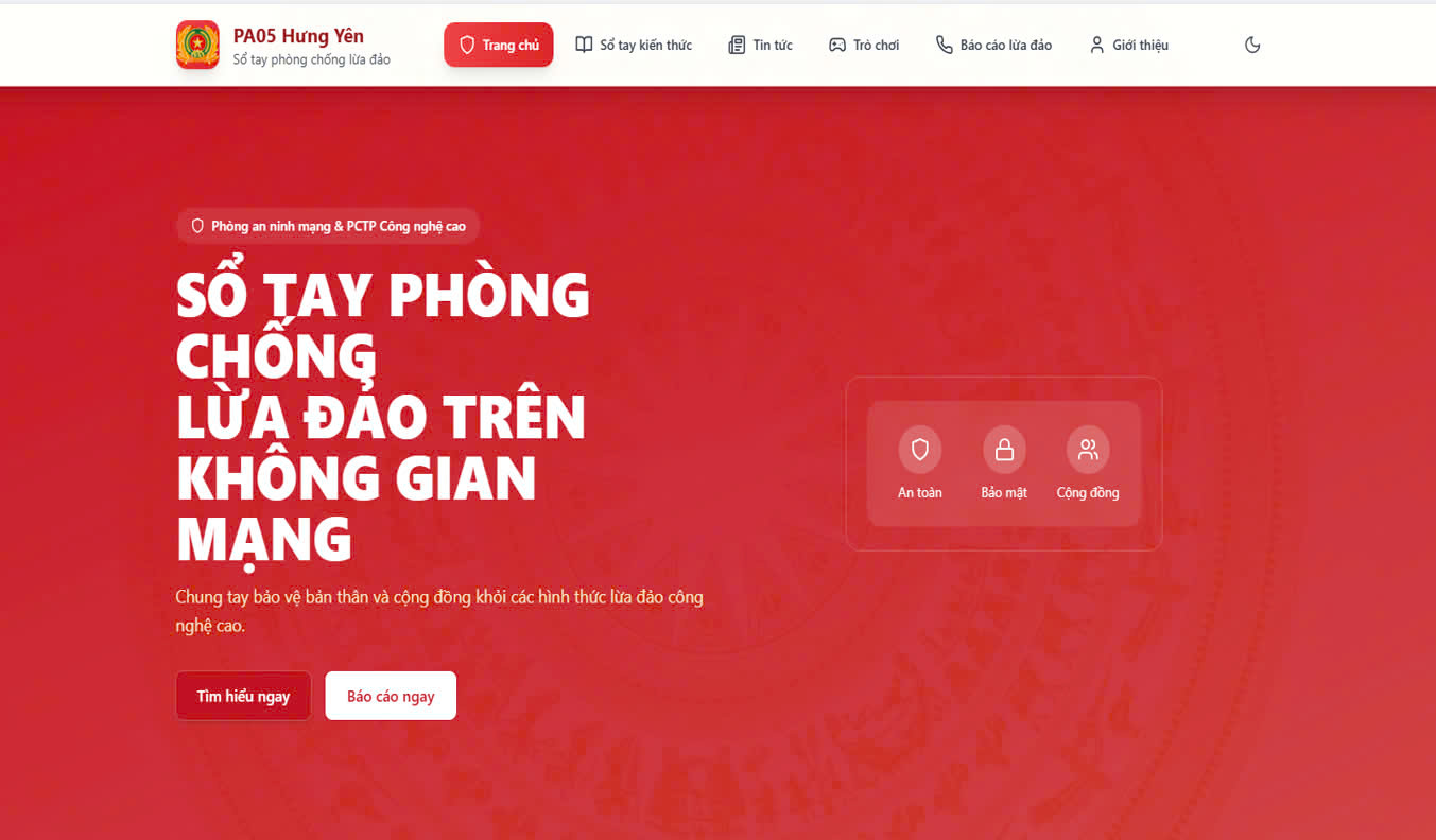 Hệ thống demo Sổ tay phòng chống lừa đảo trên không gian mạng
