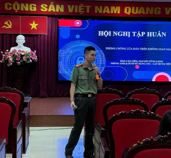 Tại buổi tuyên truyền, các báo cáo viên từ Phòng An ninh mạng và phòng chống tội phạm sử dụng công nghệ cao đã cung cấp nhiều nội dung, thông tin chuyên sâu và cấp bách liên quan đến lĩnh vực an ninh mạng và an toàn khi tham gia không gian mạng, bao gồm: Sử dụng mạng xã hội an toàn và có trách nhiệm; Các biện pháp bảo vệ thông tin cá nhân và tài khoản trên mạng xã hội (Facebook, Zalo, Instagram...); Nhận diện và phòng tránh các hành vi vi phạm pháp luật trên không gian mạng; Các hình thức lừa đảo chiếm đoạt tài sản trực tuyến phổ biến hiện nay và các Quy định pháp luật liên quan đến an ninh mạng, phòng chống tội phạm sử dụng công nghệ cao.