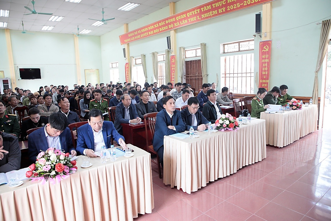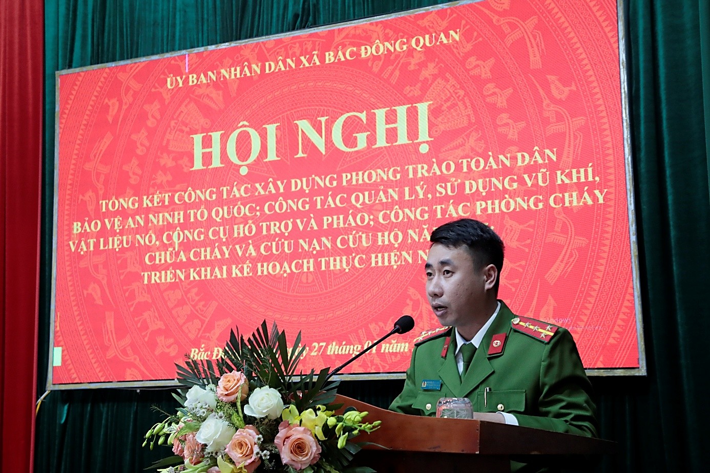 Dự và chỉ đạo Hội nghị có đồng chí Vũ Quý Nhật - Bí thư Đảng ủy, Chủ tịch Hội đồng nhân dân xã; đồng chí Nguyễn Tống Thìn - Phó Bí thư thường trực Đảng ủy; đồng chí Nguyễn Ngọc Mạnh - Phó Bí thư Đảng ủy, Chủ tịch Ủy ban nhân dân xã; cùng tham dự có đồng chí Trung tá Nguyễn Lê Hanh - Phó Trưởng phòng Công tác chính trị; đồng chí Trung tá Nông Thị Vân Anh - Phó Trưởng phòng Cảnh sát quản lý hành chính về trật tự xã hội; đồng chí Trung tá Đào Văn Bách - Phó Trưởng phòng Cảnh sát phòng cháy, chữa cháy và cứu nạn, cứu hộ, Công an tỉnh; đại diện một số ban, ngành đoàn thể của địa phương; đại diện các cơ sở tôn giáo, tín ngưỡng tại địa phương; đại diện các doanh nghiệp đóng trên địa bàn; đại diện các tổ tự quản về ANTT; chỉ huy, cán bộ chiến sỹ Công an xã và các đồng chí trong lực lượng Bảo vệ an ninh trật tự tại cơ sở.