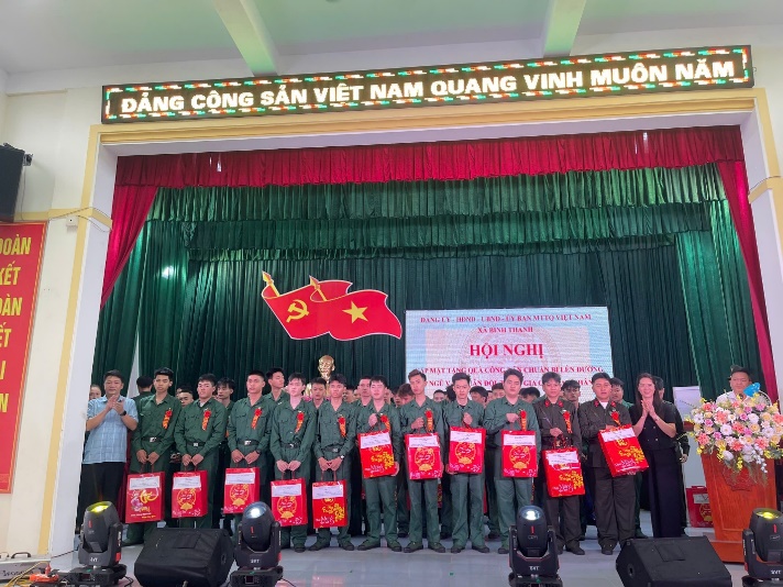Năm 2026, xã Bình Thanh được giao 04 chỉ tiêu tuyển chọn công dân thực hiện nghĩa vụ tham gia Công an nhân dân và đã hoàn thành 100% chỉ tiêu. Nhân dịp này, lãnh đạo xã và Công an xã đã trao hoa, tặng quà động viên các tân binh, tiếp thêm động lực để thanh niên yên tâm lên đường thực hiện nhiệm vụ thiêng liêng với Tổ quốc.