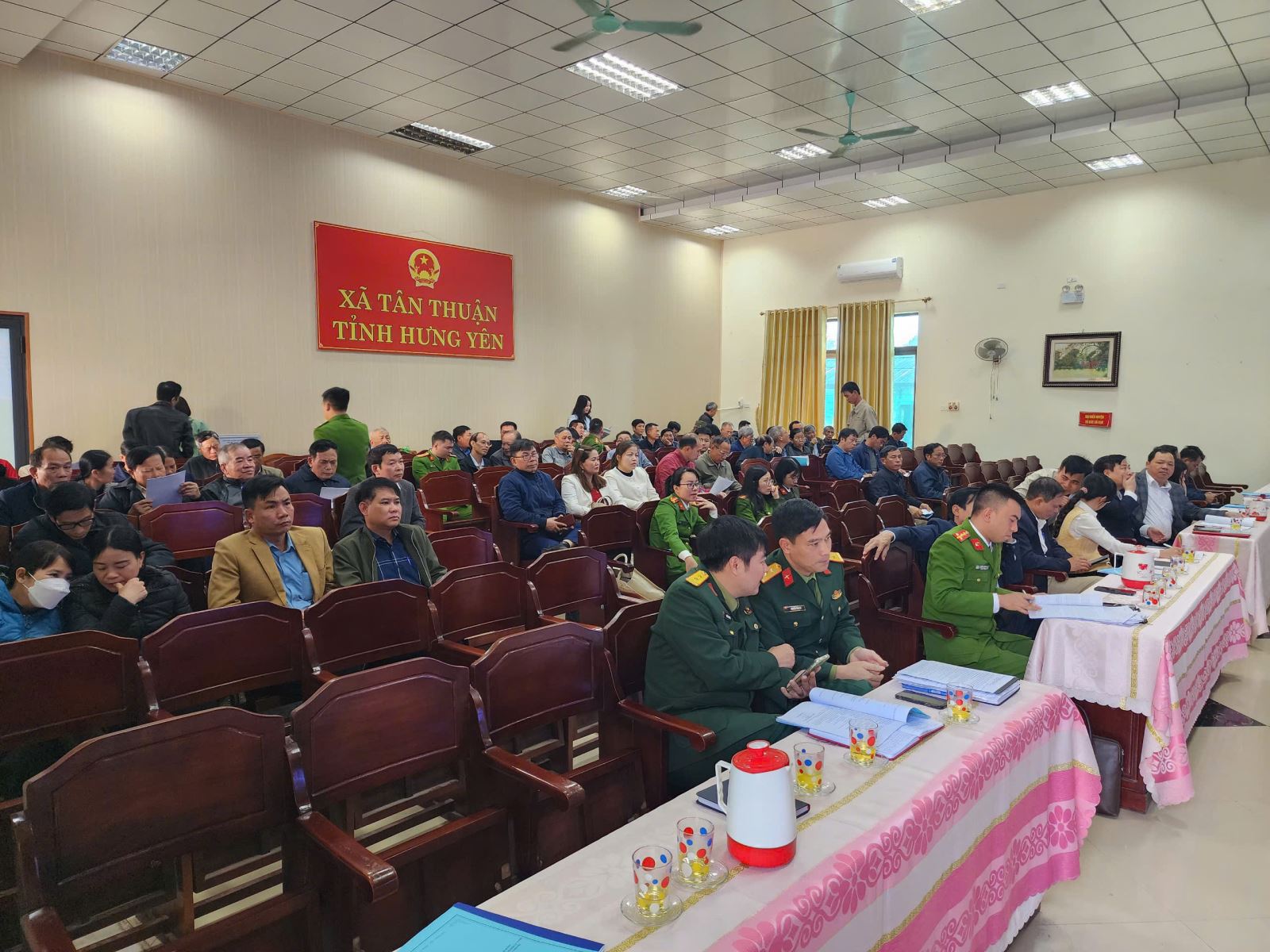 Dự hội nghị có các đồng chí: Phan Thị Ngân Phương, Phó Bí thư Thường trực Đảng ủy xã; Nguyễn Quốc Huy, Phó Bí thư Đảng ủy, Chủ tịch UBND xã; các đồng chí Ủy viên Ban Thường vụ Đảng ủy, Ủy viên Ban Chấp hành Đảng bộ xã; lãnh đạo các cơ quan, đơn vị, cơ sở thôn trên địa bàn và toàn thể cán bộ, chiến sĩ Công an xã Tân Thuận.