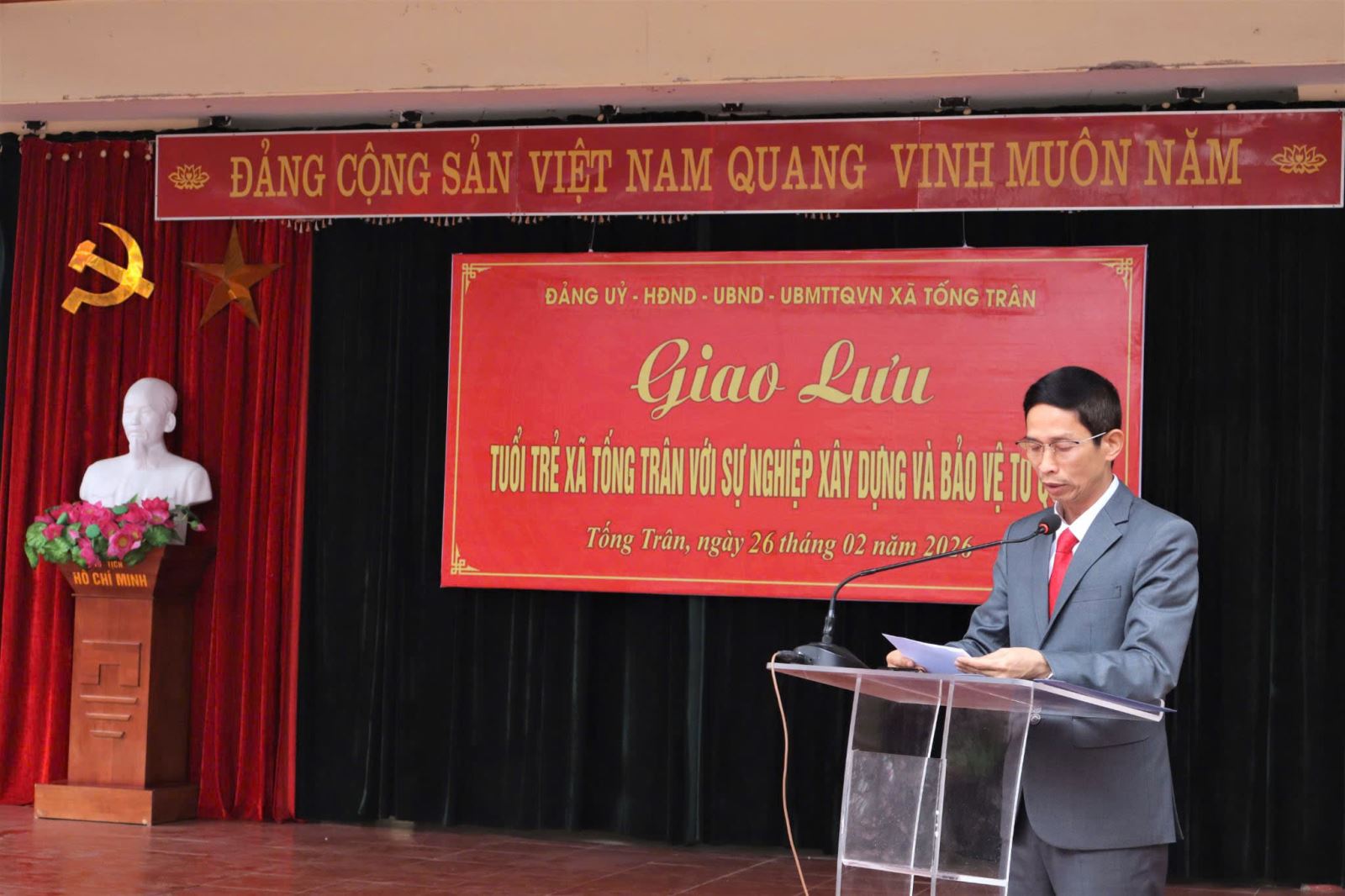 Phát biểu động viên tại buổi giao lưu, đồng chí Nguyễn Minh Tiến nhấn mạnh: những năm qua, xã Tống Trân luôn hoàn thành 100% chỉ tiêu tuyển chọn và gọi công dân nhập ngũ, chất lượng tân binh ngày càng được nâng cao. Đồng chí khẳng định, mỗi thanh niên lên đường nhập ngũ không chỉ là niềm tự hào của gia đình mà còn là vinh dự của quê hương giàu truyền thống cách mạng; đồng thời bày tỏ tin tưởng các tân binh sẽ phát huy truyền thống, ra sức học tập, rèn luyện, hoàn thành xuất sắc nhiệm vụ được giao.