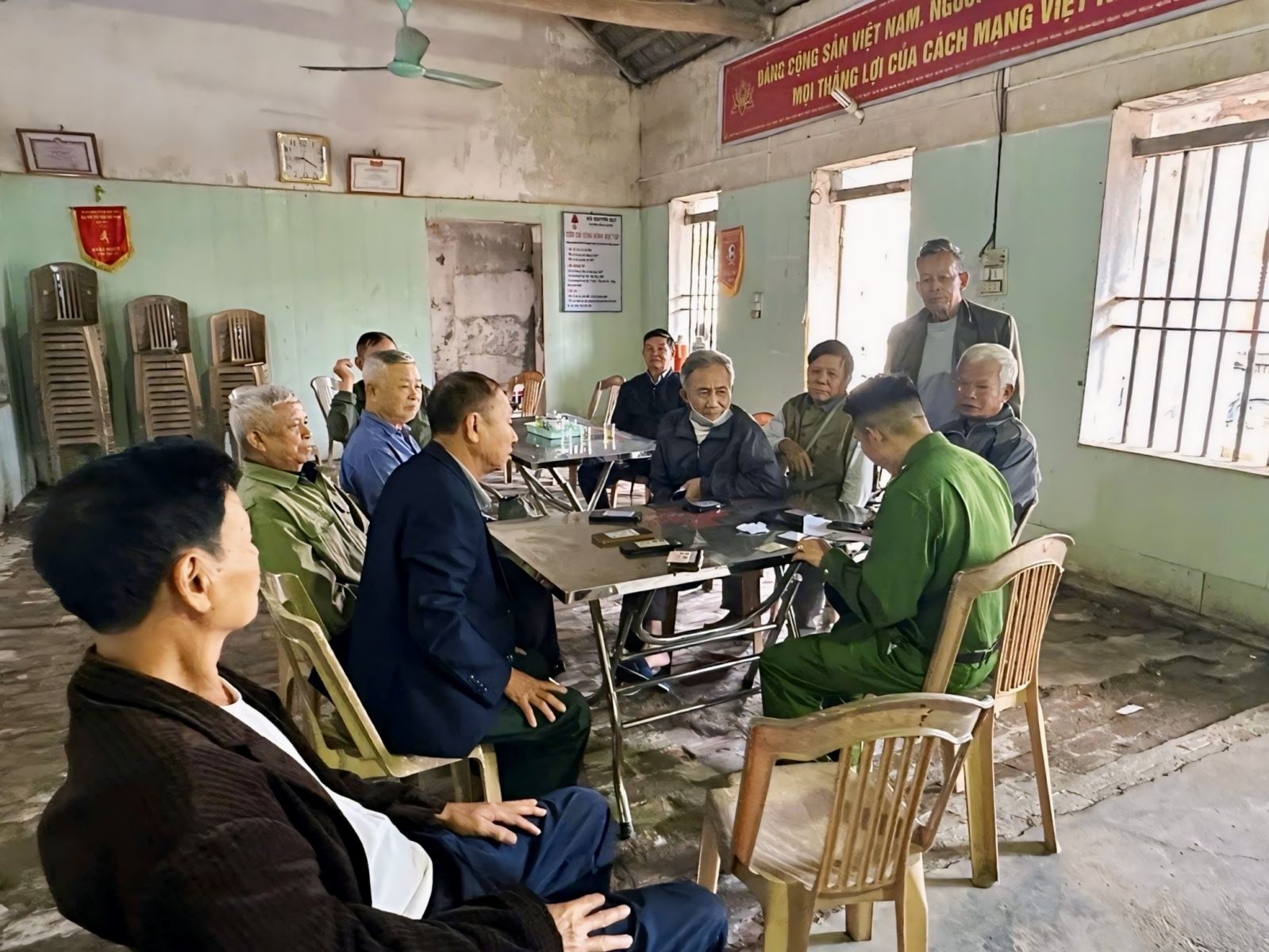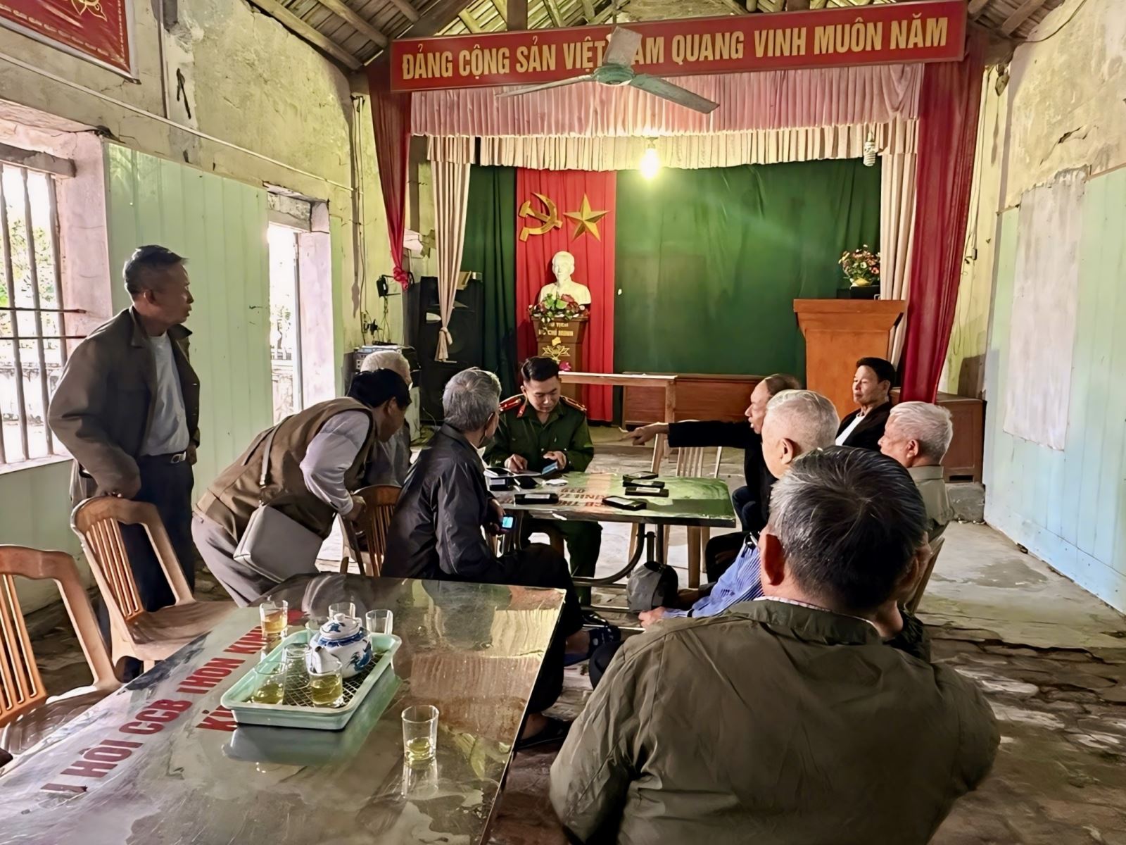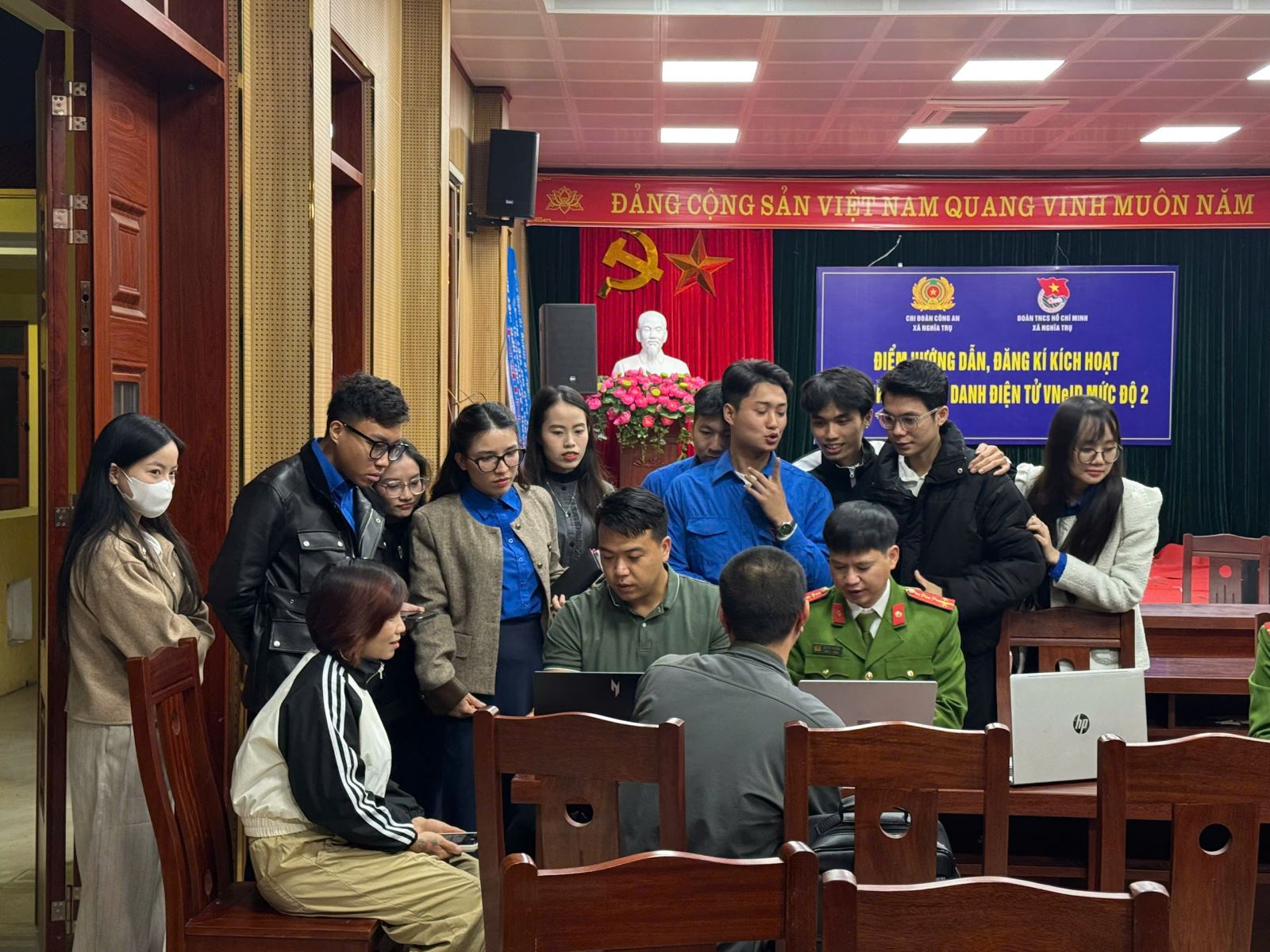 Công an xã hỗ trợ người dân kích hoạt định danh điện tử mức 2 và góp ý dự thảo các văn kiện đại hội Đảng qua ứng dụng VNeID