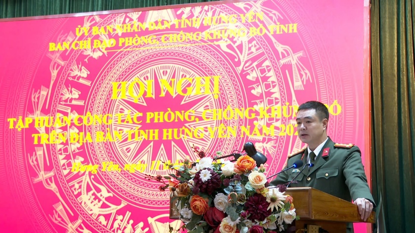 Nhằm nâng cao nhận thức cho cán bộ, đảng viên các Sở, ban, ngành, các cơ quan, đơn vị trong công tác phòng, chống khủng bố; chủ động kiểm soát tình hình, không để xảy ra khủng bố, phá hoại, tập trung đông người gây rối an ninh trật tự và bạo loạn; đồng thời tiếp tục quán triệt, triển khai thực hiện nghiêm túc hiệu quả Luật phòng, chống khủng bố, sáng ngày 11/12/2025, Ban chỉ đạo đạo Phòng chống khủng bố tỉnh Hưng Yên tổ chức Hội nghị tập huấn công tác phòng, chống khủng bố năm 2025. Đồng chí Đại tá Nguyễn Trường Lâm - Phó giám đốc Công an tỉnh chủ trì hội nghị.