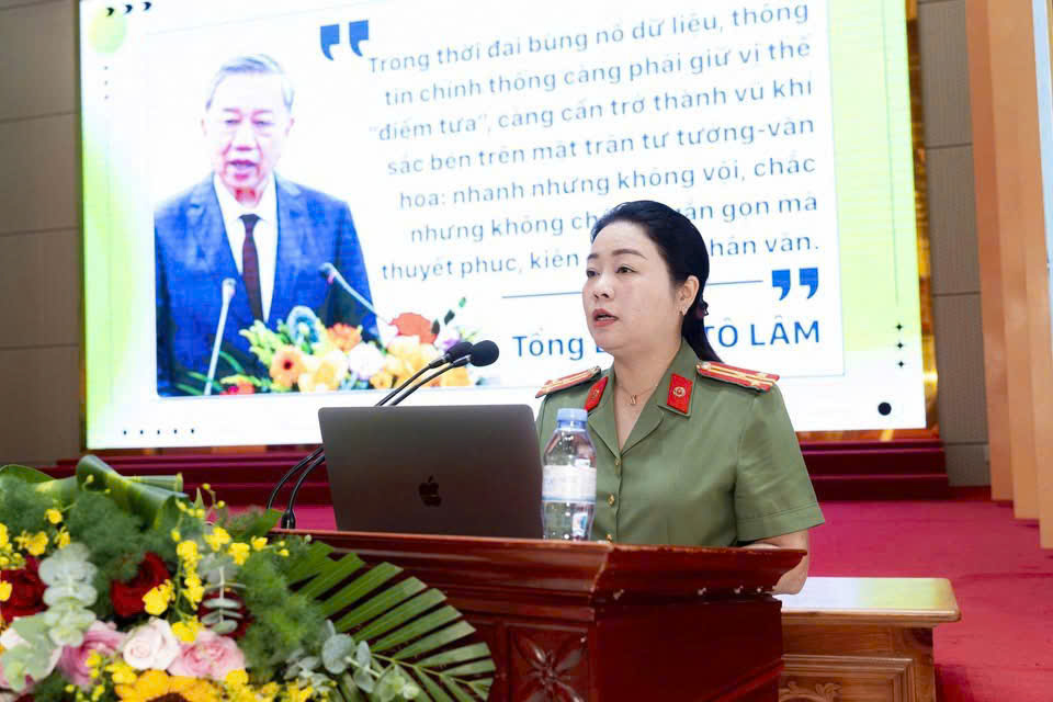 Đồng chí Thiếu tướng Ngô Hoài Thu – Phó Cục trưởng Cục Công tác Chính trị, Trưởng Ban phụ nữ Công an nhân dân quán triệt nội dung chuyên đề 1