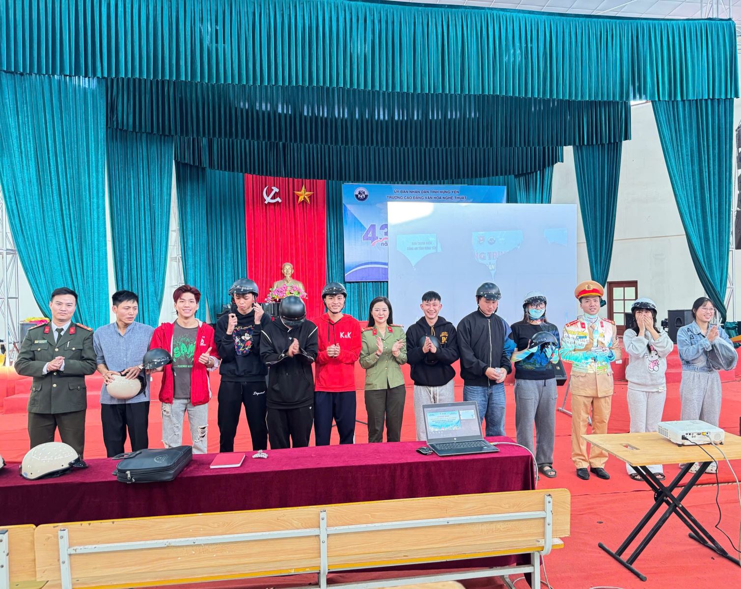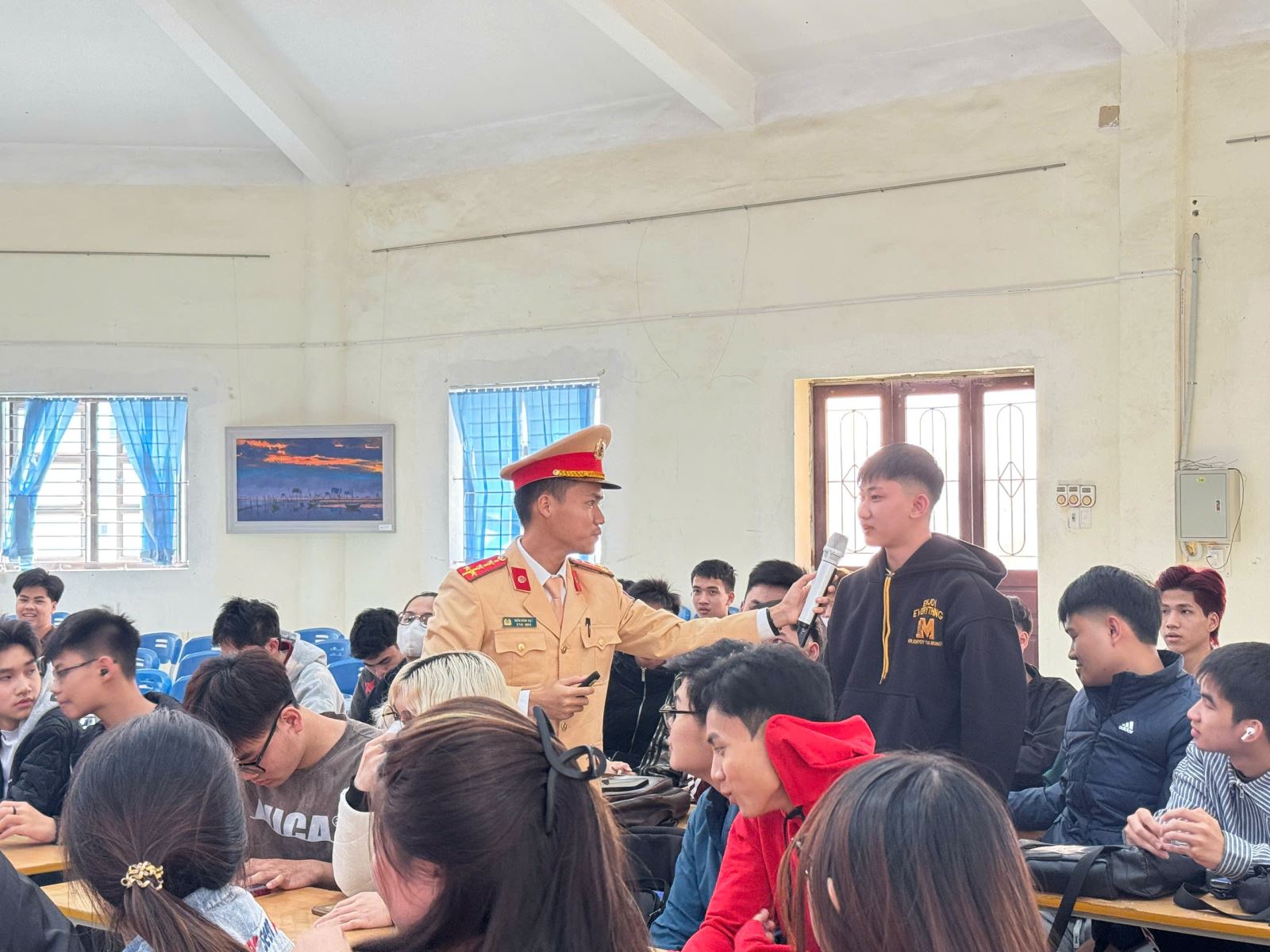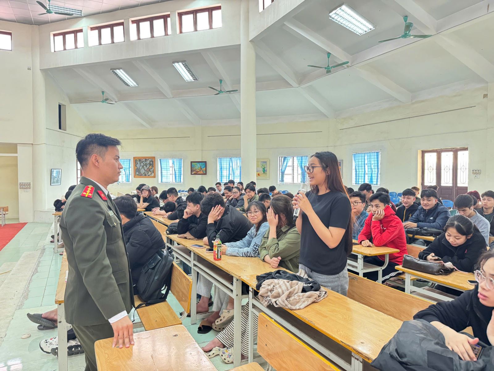 Hưởng ứng Cao điểm tấn công trấn áp tội phạm, bảo đảm an ninh, an toàn các sự kiện lớn của đất nước và Tết nguyên đán Bính Ngọ 2026, ngày 22/12/2025, Ban Thanh niên Công an tỉnh tổ chức Chương trình Tuyên truyền Luật Trật tự, an toàn giao thông đường bộ, tuyên truyền phòng chống các hình thức lừa đảo và cách thức sử dụng không gian mạng an toàn cho sinh viên Trường Cao đẳng văn hoá nghệ thuật Thái Bình.