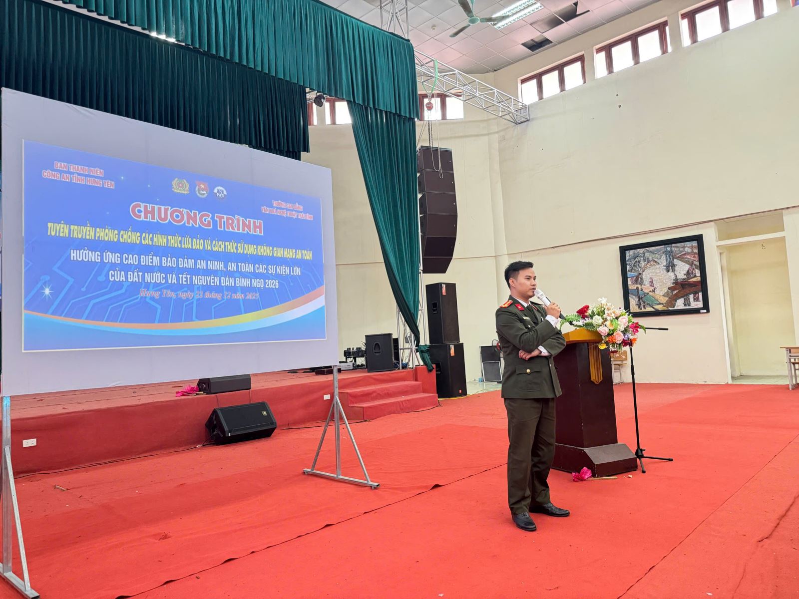 Tại chương trình, báo cáo viên Phòng Cảnh sát giao thông và Phòng An ninh mạng & phòng chống tội phạm sử dụng công nghệ cao đã cung cấp nhiều kiến thức quan trọng: Quy định mới của Luật Trật tự, an toàn giao thông đường bộ; nguyên nhân - hậu quả tai nạn giao thông; các thủ đoạn lừa đảo tinh vi qua mạng xã hội; biện pháp bảo vệ dữ liệu cá nhân, nhận diện đường link độc hại, phương thức tấn công lừa đảo tài khoản ngân hàng, ví điện tử… đặc biệt là sắp đến dịp Tết Nguyên đến Bính Ngọ 2026.