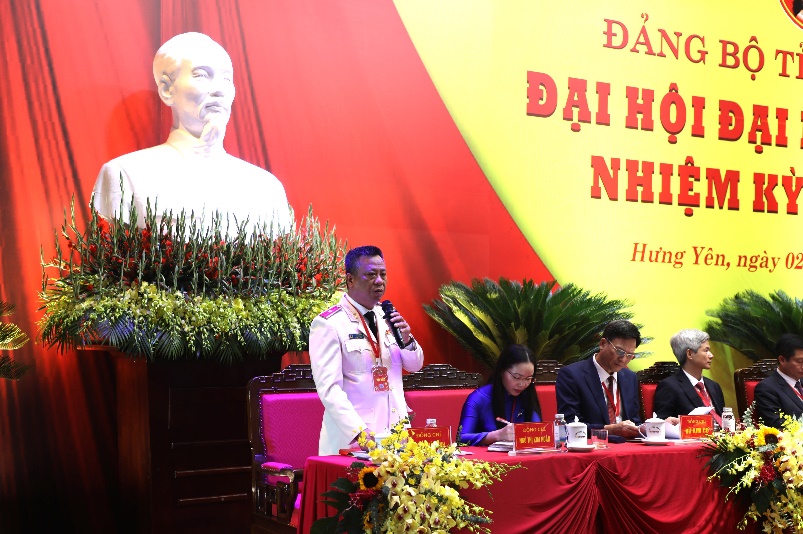 Đồng chí Thiếu tướng Trần Xuân Ánh – Uỷ viên BTV Tỉnh uỷ, Bí thư Đảng uỷ, Giám đốc Công an tỉnh điều hành tham luận tại Đại hội