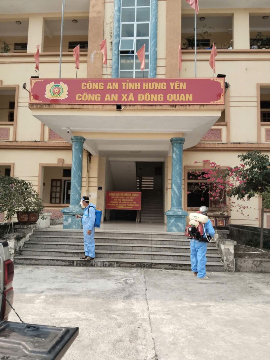 Một số hình ảnh phun hóa chất phòng dịch tại các trụ sở thuộc Công an tỉnh Hưng Yên