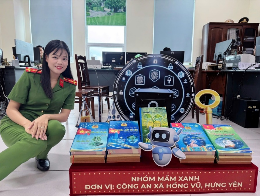 Đồng chí Phạm Thị Diệu Linh cùng tác phẩm tham dự cuộc thi “Tìm hiểu Luật Dữ liệu” trong Công an tỉnh Hưng Yên