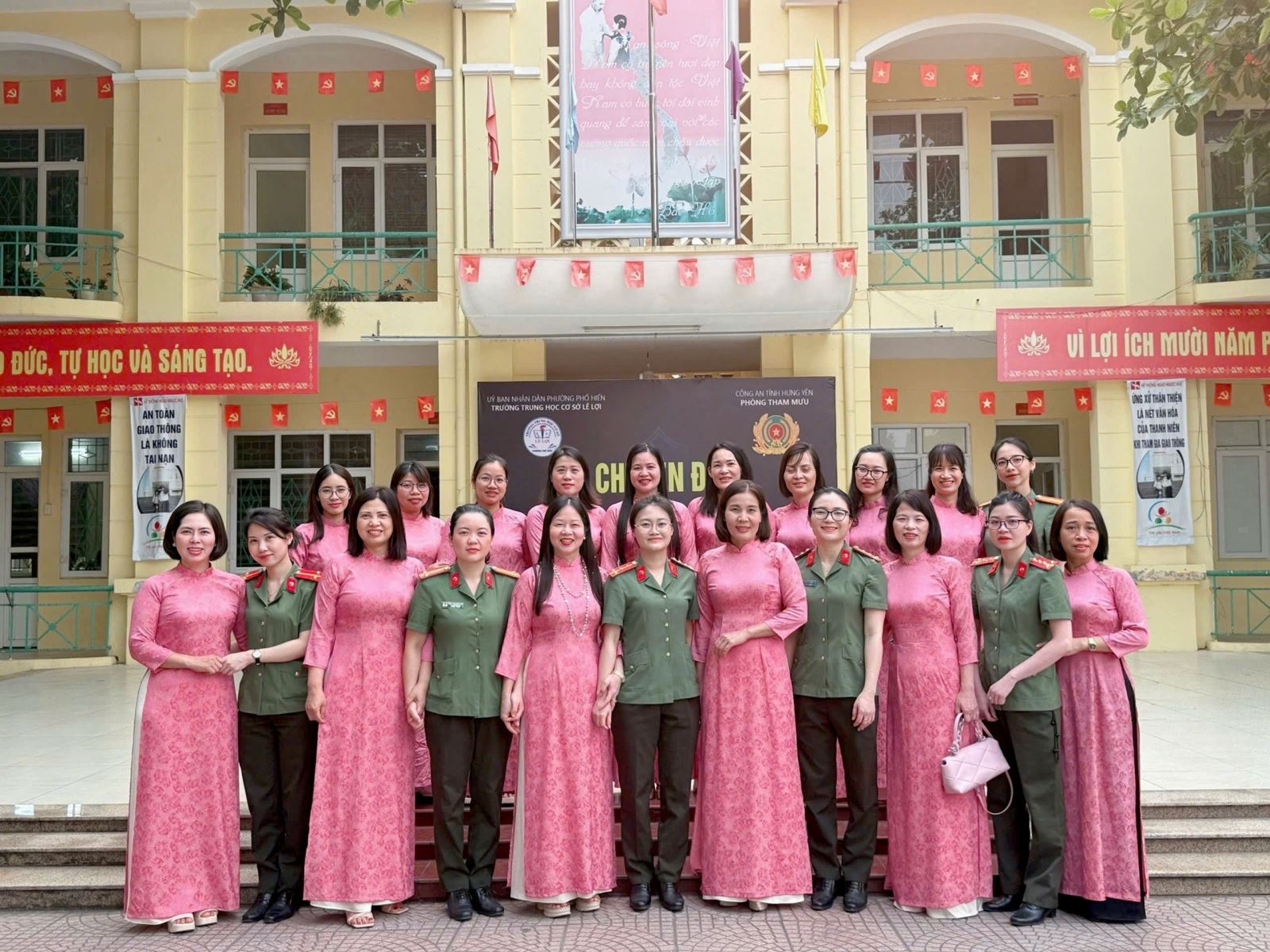 Ảnh chụp lưu niệm giữa cán bộ Hội viên Phòng Tham mưu với Trường THCS Lê Lợi