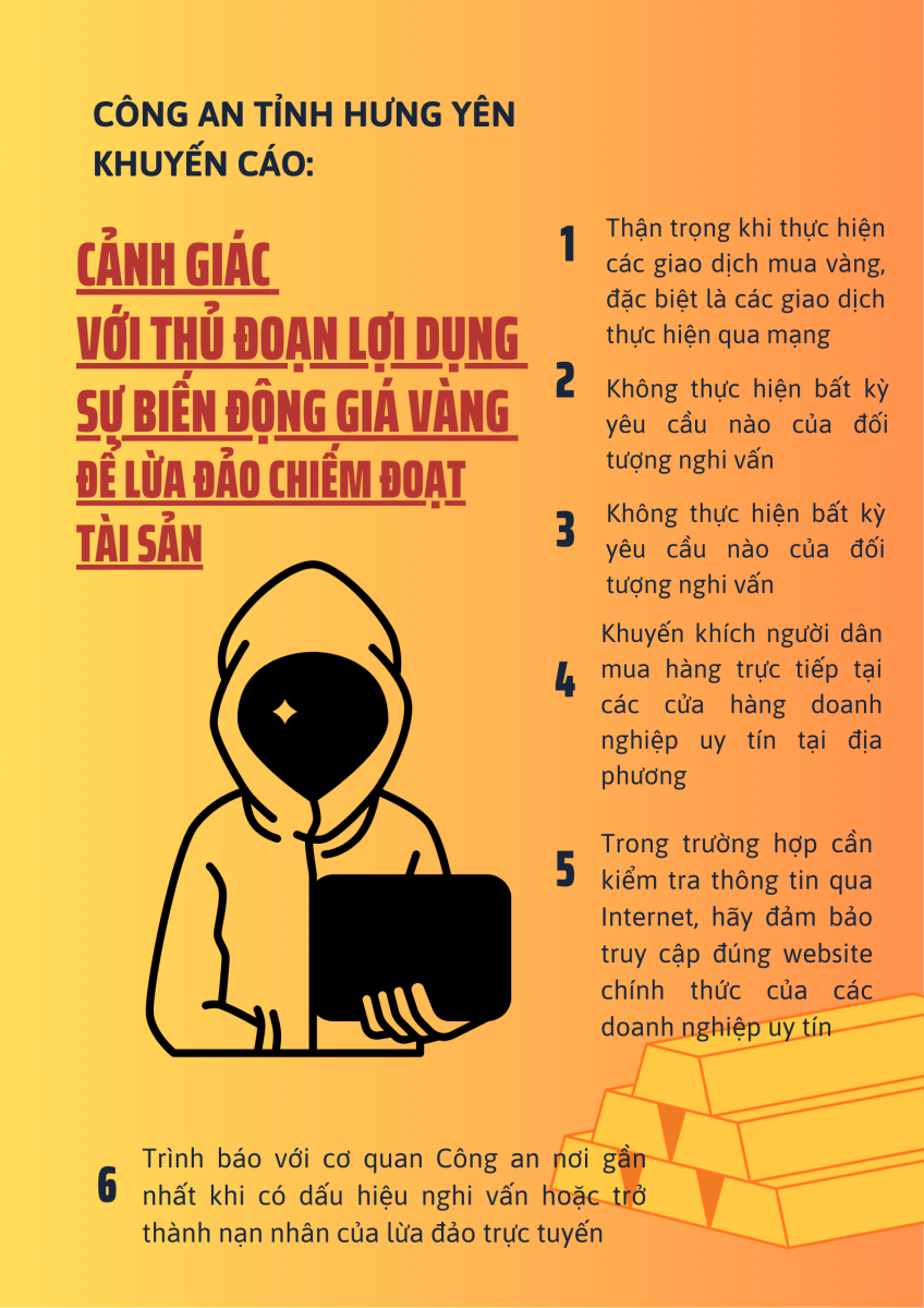 Thời gian gần đây, trong bối cảnh giá vàng tăng cao và biến động, nhu cầu người dân ngày càng gia tăng, các đối tượng lừa đảo đã giả danh doanh nghiệp kinh doanh vàng bạc, đá quý để kêu gọi người dân đầu tư mua vàng nhằm thực hiện hành vi chiếm đoạt tài sản.