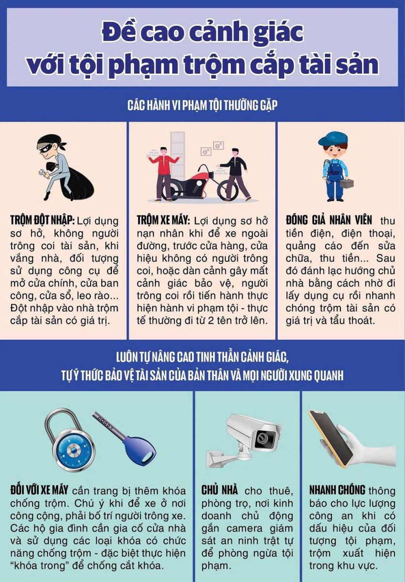 Trước tình hình đó, lực lượng Công an đã triển khai đồng bộ nhiều biện pháp nghiệp vụ, tăng cường tuần tra, kiểm soát, chủ động phát hiện, đấu tranh và xử lý nghiêm các hành vi vi phạm pháp luật. Tuy nhiên, để việc phòng ngừa đạt hiệu quả cao, rất cần sự chung tay, phối hợp tích cực của mỗi người dân trong nâng cao ý thức tự bảo vệ tài sản của chính bản thân và gia đình.