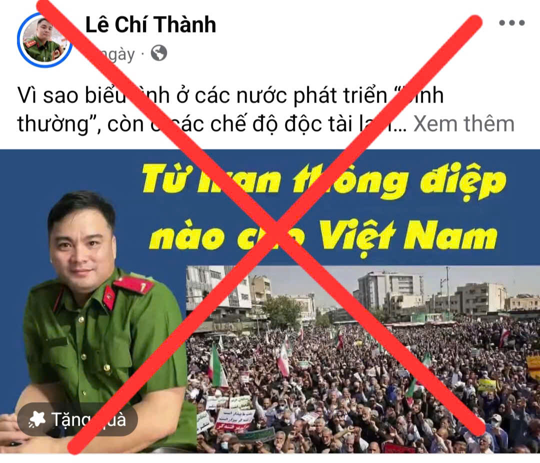 Thời gian qua, tài khoản Facebook, trang fanpage mang tên Lê Chí Thành đăng tải nhiều video, bài viết có nội dung xuyên tạc, sai sự thật, xâm phạm lợi ích của Nhà nước, quyền, lợi ích hợp pháp của tổ chức, cá nhân. Bản thân Thành có quá khứ tù tội, bị tước danh hiệu Công an nhân dân nhưng y vẫn sử dụng trang phục Công an nhân dân thời còn công tác để thực hiện hành vi xuyên tạc trên mạng xã hội. Hành động trên của Lê Chí Thành không chỉ gây ảnh hưởng xấu đến uy tín, hình ảnh của lực lượng Công an nhân dân mà còn vi phạm nghiêm trọng pháp luật.