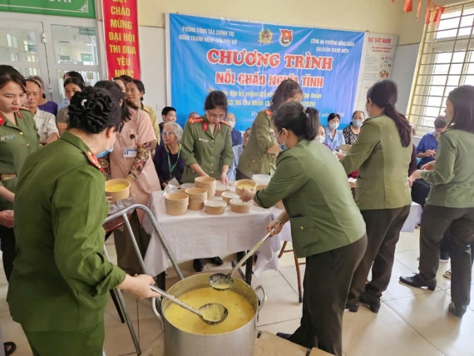 Phát huy tinh thần xung kích, tình nguyện vì cộng đồng, sáng ngày 24/3/2026, Chi đoàn thanh niên Công an phường đã phối hợp Đoàn thanh niên – Hội phụ nữ Công an tỉnh thực hiện chương trình “Nồi cháo nghĩa tình” tại khoa phục hồi chức năng và khoa ung bướu bệnh viện đa khoa tỉnh Hưng Yên. Tham gia chương trình còn có các đồng chí trong Đảng ủy, Chỉ huy Công an phường. Chương trình được triển khai với mong muốn sẻ chia, lan tỏa yêu thương đến những bệnh nhân có hoàn cảnh khó khăn đang điều trị tại bệnh viện. Với tinh thần tương thân, tương ái, các đoàn viên thanh niên đã trực tiếp chuẩn bị và trao tặng 200 suất cháo đến tận tay người bệnh cùng những lời thăm hỏi, động viên chân thành mang lại niềm vui, sự ấm áp, tiếp thêm nghị lực cho những người bệnh đang kiên cường chống chọi với bệnh tật. Tuy chỉ là hành động nhỏ nhưng thể hiện vai trò, trách nhiệm của tuổi trẻ lực lượng Công an nhân dân trong công tác an sinh xã hội. Đây cũng là dịp để đoàn viên thanh niên rèn luyện tinh thần đoàn kết, nâng cao ý thức phục vụ nhân dân, góp phần xây dựng hình ảnh người chiến sỹ công an gần gũi, thân thiện, vì nhân dân phục vụ.