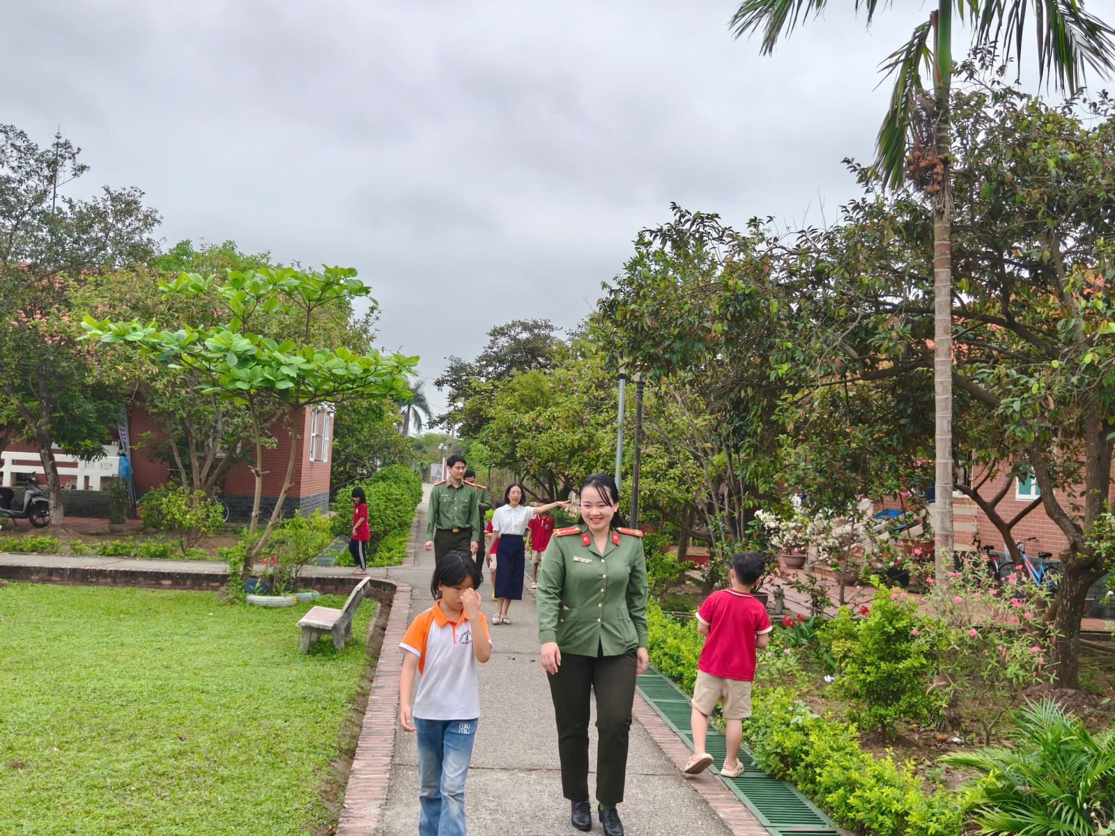 Các em dẫn cán bộ, chiến sĩ đi thăm ngôi nhà của mình