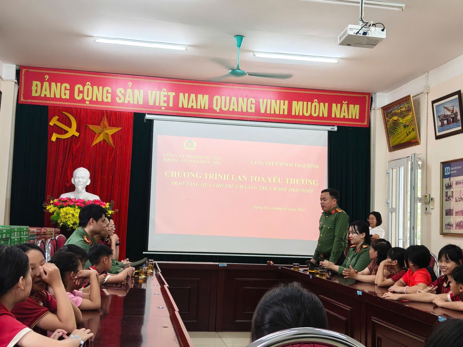 Trong truyền thống tốt đẹp của dân tộc Việt Nam, tinh thần “tương thân tương ái” luôn được gìn giữ và phát huy qua nhiều thế hệ. Đó không chỉ là lời nhắc nhở về trách nhiệm của mỗi người đối với cộng đồng, mà còn là ngọn lửa nhân ái thắp sáng niềm tin và hy vọng cho những mảnh đời còn nhiều thiếu thốn. Với ý nghĩa ấy, Chi Đoàn Phòng An ninh điều tra đã tổ chức chương trình “Lan toả yêu thương” tại Làng trẻ em SOS Thái Bình, mang đến sự sẻ chia và tình cảm chân thành cho các em nhỏ nơi đây.