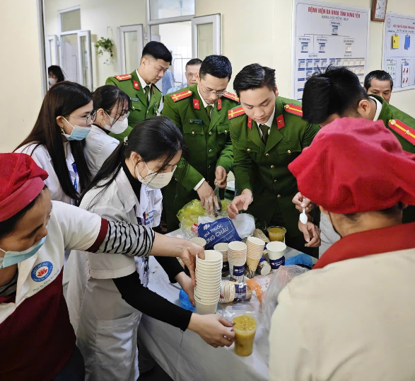 Ngay từ sáng sớm, các đoàn viên đã chủ động chuẩn bị, nấu và trực tiếp trao những suất cháo nóng đến tận tay các bệnh nhân và người nhà bệnh nhân đang điều trị nội trú tại Bệnh viện Đa khoa tỉnh Hưng Yên. Hoạt động phát cháo từ thiện được Chi đoàn Phòng Kỹ thuật hình sự triển khai trong không khí ấm áp, nghĩa tình, với sự tham gia tích cực, trách nhiệm của đoàn viên thanh niên trong đơn vị. Sự chỉ đạo, đồng hành của lãnh đạo đơn vị đã thể hiện sự quan tâm, ủng hộ đối với các hoạt động an sinh xã hội, tình nguyện vì cộng đồng do Chi đoàn Phòng Kỹ thuật hình sự tổ chức.