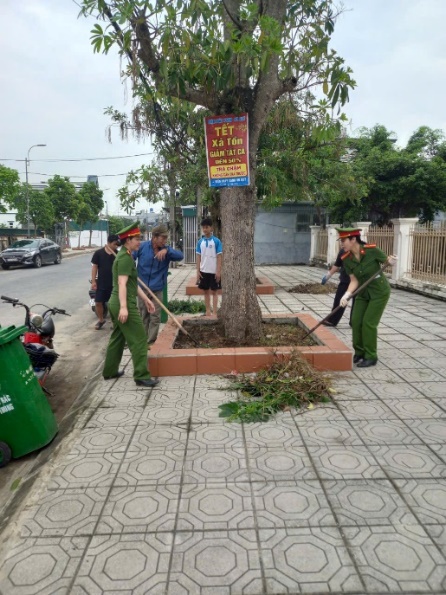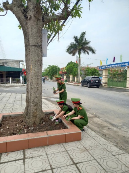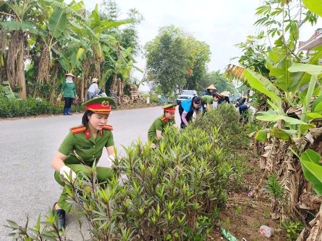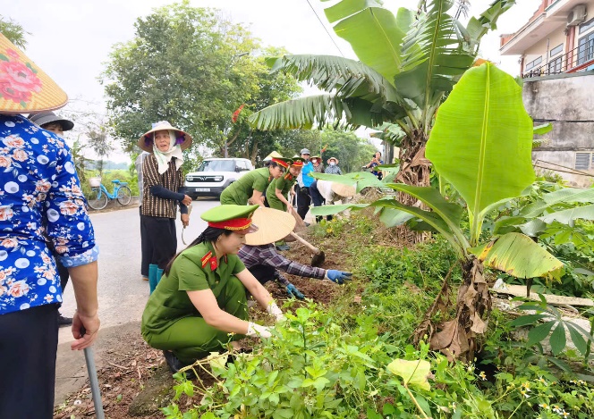 Tại buổi ra quân, các hội viên phụ nữ đã cùng nhau phát quang bụi rậm, dọn dẹp vệ sinh dọc các tuyến đường chính. Tổ chức trồng mới 1.000 cây dừa cạn và các loại hoa có sức sống tốt, màu sắc rực rỡ như hoa mười giờ, chiều tím, hoa giấy…Đồng thời, phân công cụ thể các tổ phụ nữ tự quản để chăm sóc, tưới cây định kỳ, đảm bảo tuyến đường luôn xanh - sạch - đẹp. Hoạt động không chỉ đơn thuần là làm đẹp cảnh quan môi trường mà còn là dịp để các cán bộ hội viên phụ nữ chiến sĩ Công an xã thắt chặt mối quan hệ gắn bó với nhân dân địa phương. Hình ảnh những nữ chiến sĩ Công an xã cùng các bà, các chị em phụ nữ các thôn hăng hái lao động dưới nắng hè đã tạo nên một bức tranh đẹp về tinh thần đoàn kết.