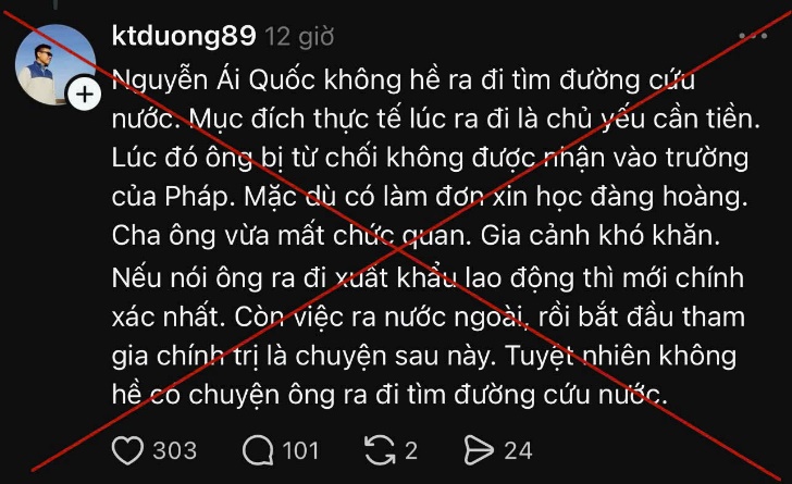 Hai là, phủ nhận vai trò lãnh đạo của Đảng Cộng sản Việt Nam, đưa ra những luận điệu sai trái như cho rằng con đường phát triển hiện nay là “không phù hợp”, “đi ngược quy luật”.