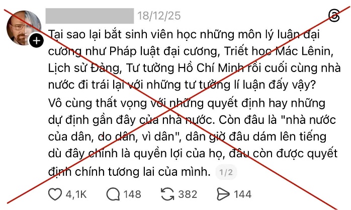 Một là, chúng xuyên tạc, phủ nhận con đường đi lên chủ nghĩa xã hội ở Việt Nam. Chúng thường lấy sự sụp đổ của Liên Xô và các nước Đông Âu làm dẫn chứng, từ đó gieo rắc tâm lý hoài nghi, làm lung lay niềm tin của giới trẻ.
