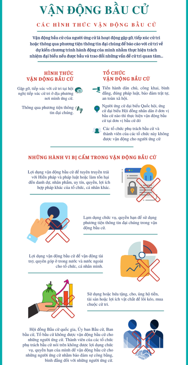 Hoạt động vận động không lành mạnh, chạy phiếu bầu cử thường diễn ra tinh vi, khó phát hiện, với nhiều hình thức khác nhau như: lợi dụng chức vụ, uy tín, quan hệ cá nhân để gây sức ép, tác động đến cử tri; tặng quà, chi tiền, hứa hẹn lợi ích vật chất hoặc lợi ích chính trị để đổi lấy sự ủng hộ; tổ chức vận động trái phép ngoài chương trình, nội dung, thời gian theo quy định; tung tin sai sự thật, bôi nhọ, hạ uy tín người khác nhằm nâng cao vị thế bản thân. Những hành vi này không chỉ vi phạm pháp luật mà còn làm méo mó ý nghĩa dân chủ của bầu cử.