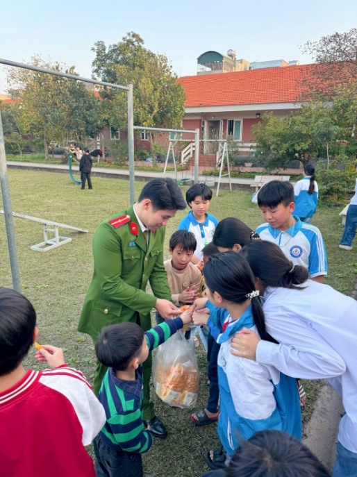 Đoàn Thanh niên và Hội Phụ nữ Công an xã Hồng Vũ trao quà cho các em nhỏ tại làng trẻ SOS