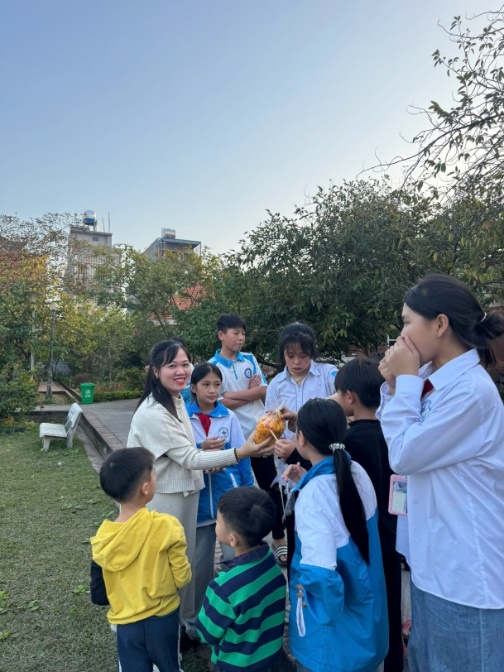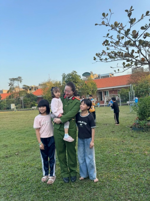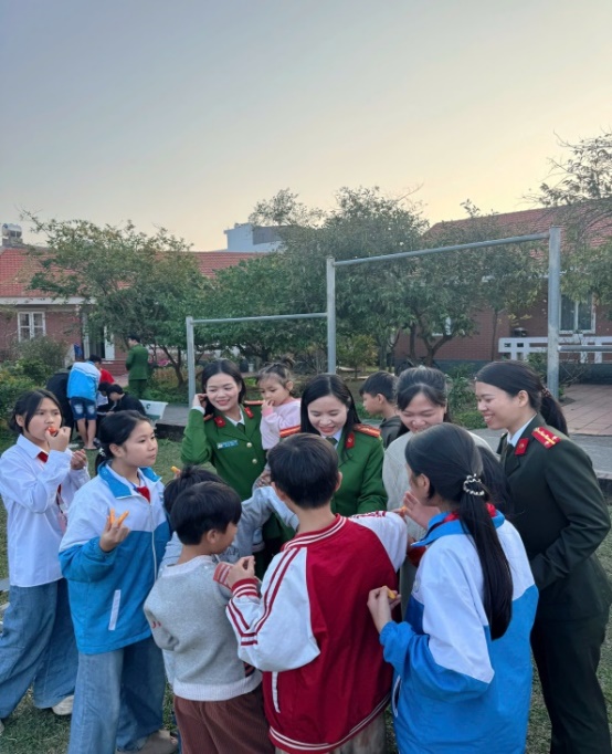 Đoàn viên thanh niên, hội viên phụ nữ Công an xã Hồng Vũ trò chuyện, động viên, quan tâm chăm sóc các em làng trẻ SOS