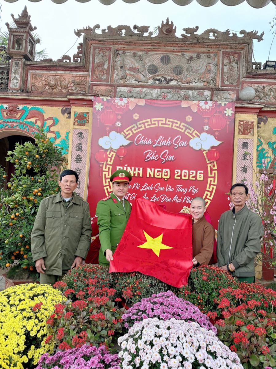 Công an xã Tiên La vận động treo cờ Tổ quốc tại các cơ sở tín ngưỡng, tôn giáo trên địa bàn xã