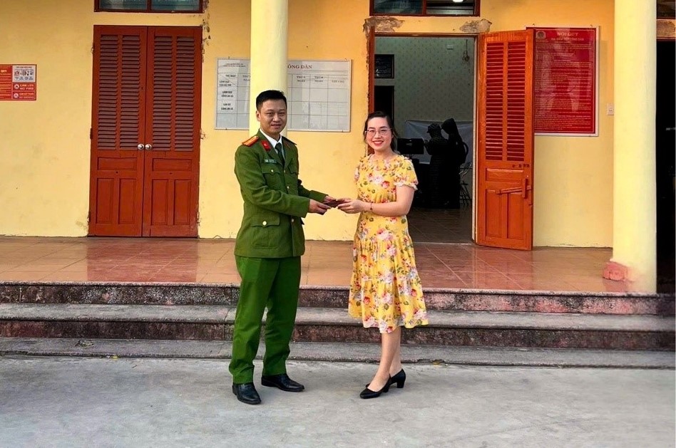 Công an xã Châu Ninh tuyên dương hai công dân trung thực trả lại tài sản