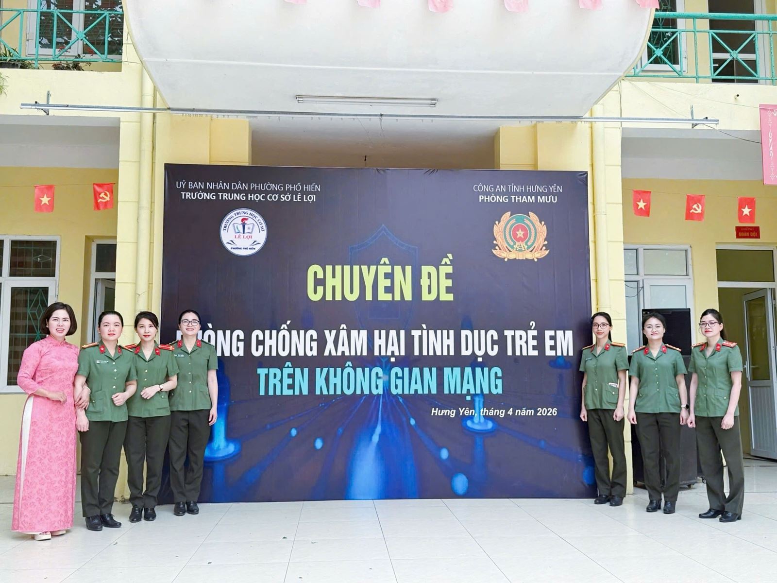 Cán bộ Hội viên Phòng Tham mưu Công an tỉnh Hưng Yên tuyên truyền phòng, chống xâm hại tình dục trẻ em trên không gian mạng tại Trường THCS Lê Lợi