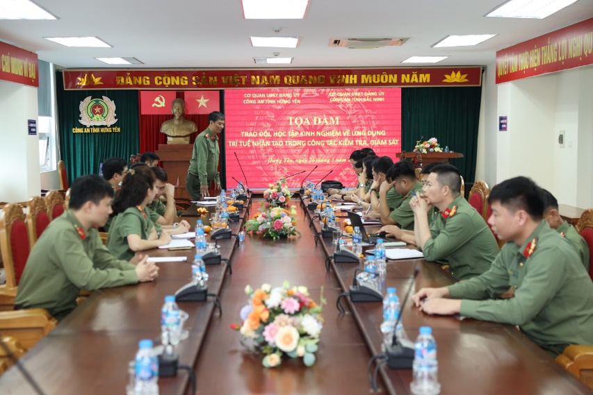 Tại tọa đàm, các đại biểu tập trung trao đổi cách thức vận dụng khoa học – công nghệ và AI nhằm hỗ trợ nhiệm vụ kiểm tra, giám sát trong Đảng bộ Công an tỉnh. Nội dung thảo luận cũng gắn với việc triển khai Nghị quyết số 57-NQ/TW ngày 22/12/2024 của Bộ Chính trị về đột phá phát triển khoa học, công nghệ, đổi mới sáng tạo và chuyển đổi số quốc gia. Hai bên cũng đã giới thiệu một số mô hình, giải pháp đang triển khai tại đơn vị, như kinh nghiệm xây dựng phần mềm quản lý văn bản, số hóa tài liệu, phục vụ khai thác, tra cứu trong công tác chuyên môn, những kết quả bước đầu ứng dụng AI trong công tác kiểm tra, giám sát ...