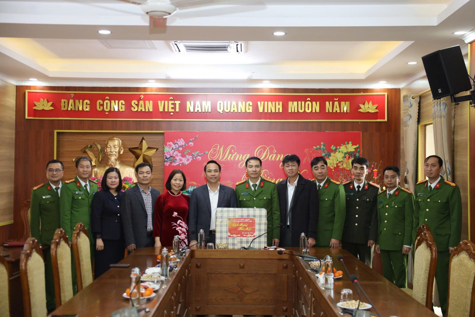 Đồng chí Đại tá Vũ Trung Thành, Phó Giám đốc Công an tỉnh tặng quà, chúc Tết Đảng ủy, HĐND, UBND, Ủy ban MTTQ Việt Nam và Công an xã Lạc Đạo