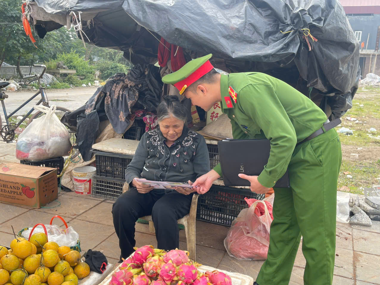 Công an phường phát tờ rơi tuyên truyền phòng chống ma túy