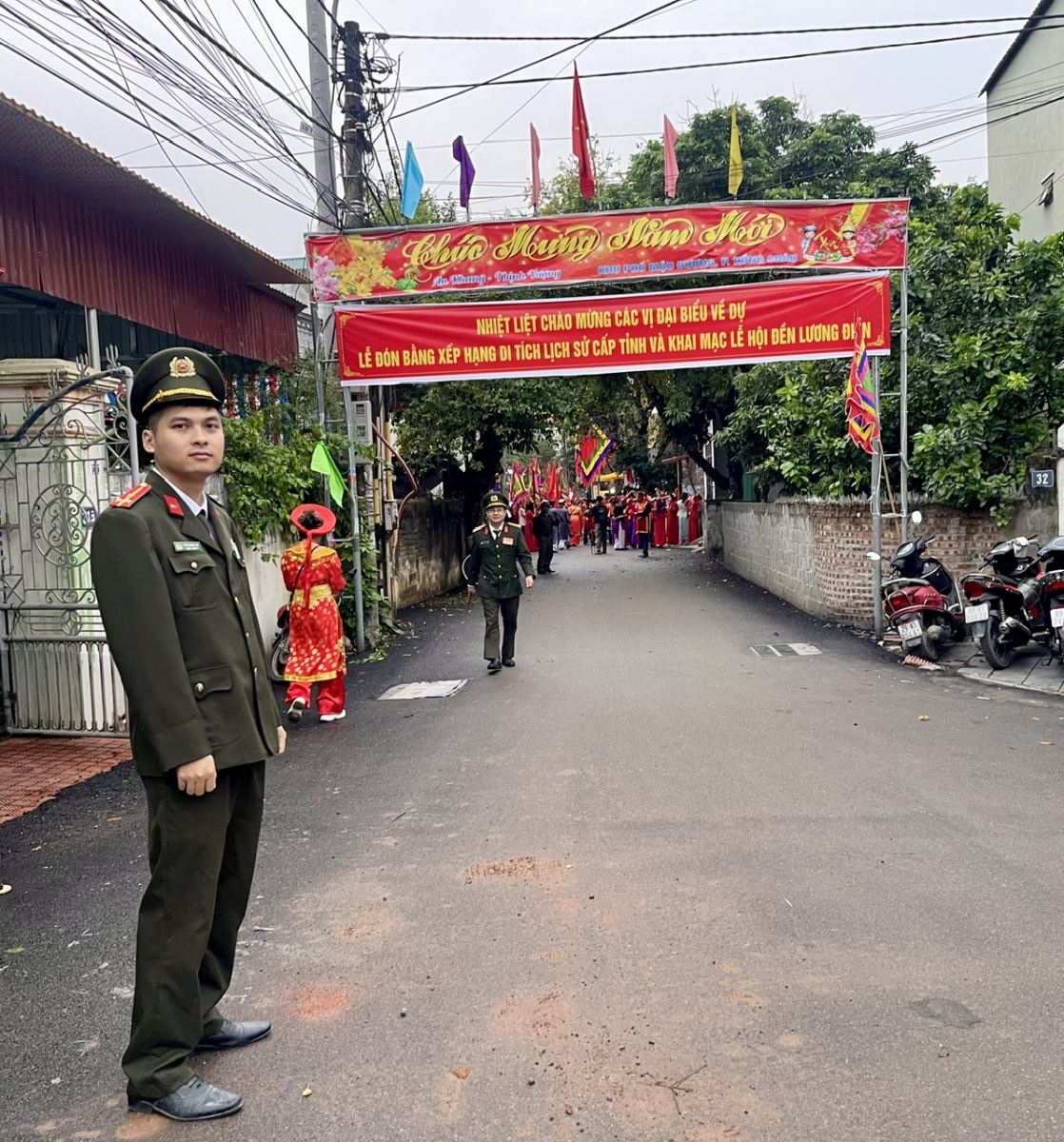 Cán bộ chiến sĩ Công an phường tham gia đảm bảo ANTT lễ hội đền Lương Điền