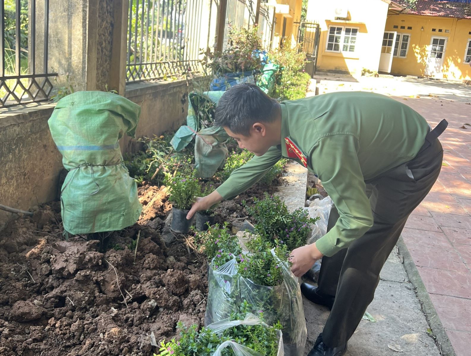Sau khi hoàn thành việc tu sửa tượng đài, Chi đoàn thanh niên phối hợp Chi hội phụ nữ Công an phường Mỹ Hào tổ chức dọn dẹp, cắt tỉa cây, trồng hoa xung quanh tượng đài cũng như khuôn viên trụ sở Công an phường.