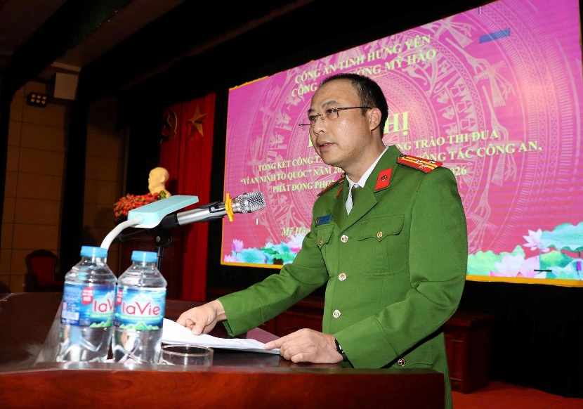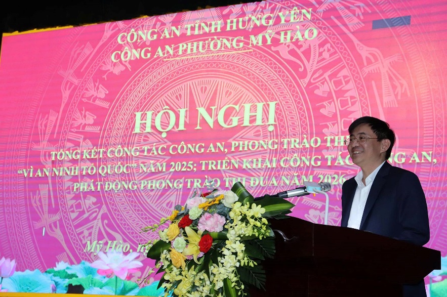 Phát biểu chỉ đạo tại hội nghị, đồng chí Nguyễn Minh Tuấn, Phó Bí thư Đảng ủy, Chủ tịch UBND phường yêu cầu Công an phường Mỹ Hào cần quán triệt, triển khai nghiêm túc các chỉ đạo của Bộ Công an, Công an tỉnh, đổi mới tư duy, tạo thống nhất cao trong công tác bảo đảm an ninh, trật tự với tinh thần: “Hành động quyết liệt-Kết quả vượt chội” quyết tâm phấn đấu thực hiện thắng lợi các chỉ tiêu, nhiệm vụ chính trị năm 2026, góp phần vững chắc bảo vệ an ninh quốc gia, bảo đảm trật tự an toàn xã hội để đưa đất nước ta bước vào kỷ nguyên mới - Kỷ nguyên phát triển thịnh vượng, hùng cường...