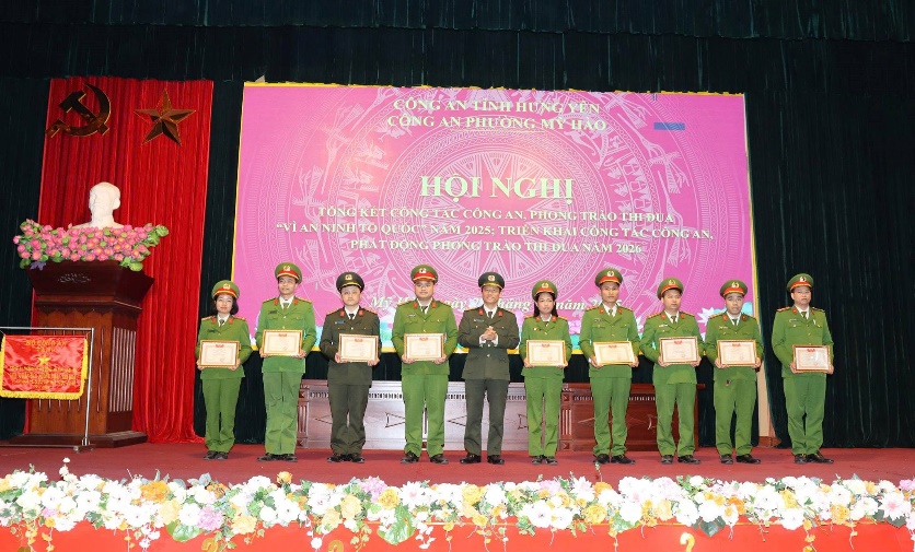 Với những kết quả đã đạt được năm 2025 Công an phường Mỹ Hào vinh dự được Bộ Công an tặng cờ thi đua đơn vị dẫn đầu phong trào thi đua “Vì an ninh Tổ quốc” năm 2025; nhiều tập thể, cá nhân được Giám đốc Công an tỉnh và UBND phường biểu dương tặng giấy khen.