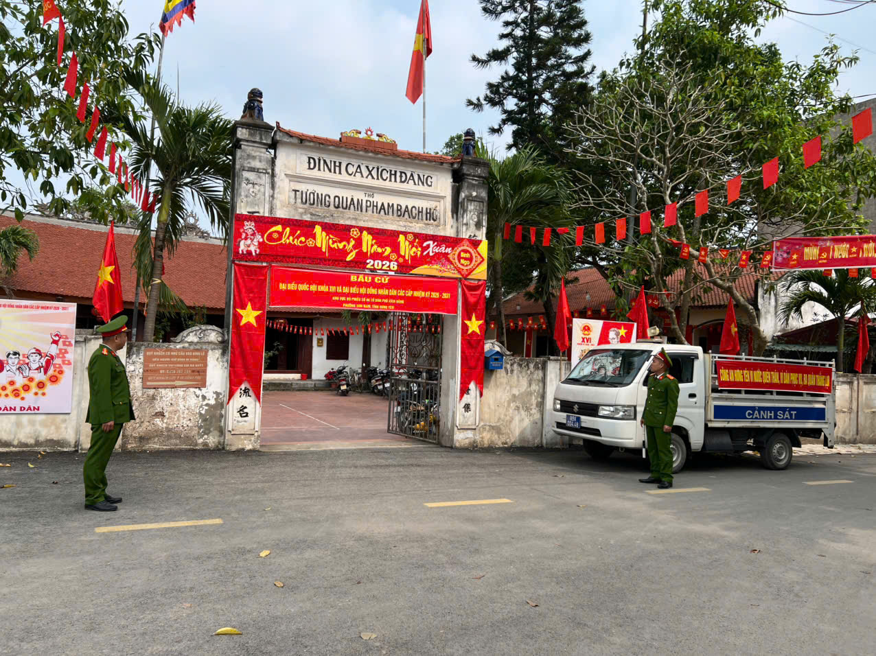 Công an phường phối hợp các lực lượng tham gia bảo đảm ANTT tổ bầu cử Tổ dân phố Xích Đằng và Tổ bầu cử Tổ dân phố Tân Hưng nơi đoàn đến kiểm tra.
