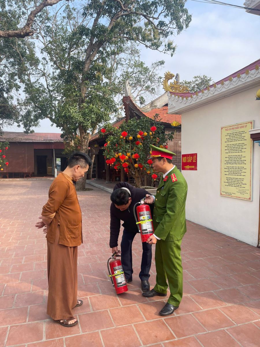 Công an phường tuyên truyền, hướng dẫn người dân sử dụng thiết bị phòng cháy chữa cháy