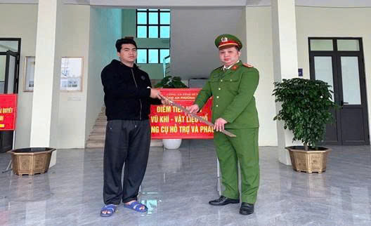 Người dân đến Công an phường giao nộp vũ khí và pháo nổ tại Công an phường Sơn Nam