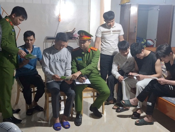 Công an phường Sơn Nam tiến hành kiểm tra, làm việc với các đối tượng tại khu nhà trọ trên địa bàn.